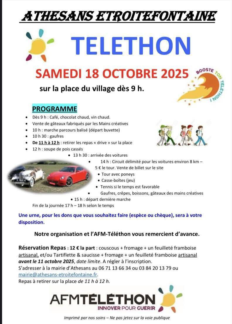 The village of Athesans is organising a day of events in aid of the telethon on the theme "Tous bâtisseurs!" (All builders!).