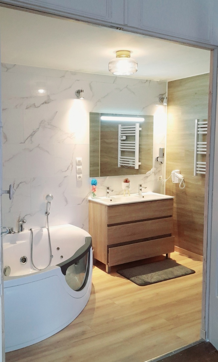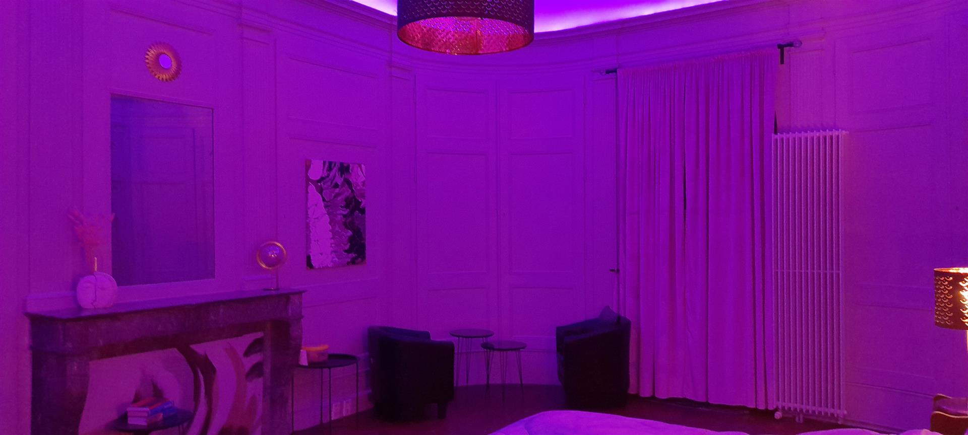 The perfect romantic suite for a once-in-a-lifetime rendezvous. This oval room in the modern Baroque style will offer you a timeless moment for two. En-suite bathroom with whirlpool bath. View of the lower village of Villersexel from the private balcony. Breakfast (individual cake, kettle, tea and coffee). Shower gel, towels, linen and wall-mounted hairdryer provided. In the centre of town, close to all shops.